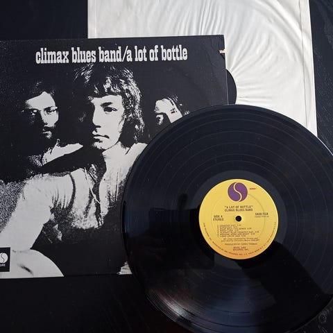 Climax Blues Band A Lot of Bottle vinylplate med svart-hvitt omslag. Inneholder musikkalbum fra Climax Blues Band.