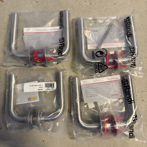 Randi innerdørs håndtak i børstet stål, minimalistisk stil. Selges i forpakning og uåpnet i plast.