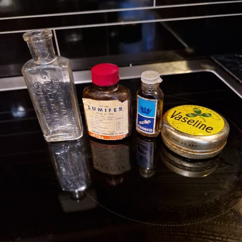 Den minste med metall kork er antikk og merket Christiania.