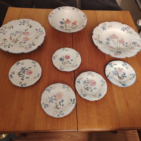 Sjarmerande vintage håndmalte supperskåler og asjetter fra Øst-Tyskland