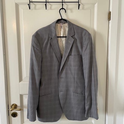 Pen og klassisk herreblazer fra Alvo i grå strukturert kvalitet. Tidløst snitt som passer like godt til jobb som til pent hverdagsbruk. Jakken er helfôret og fremstår som pent brukt.