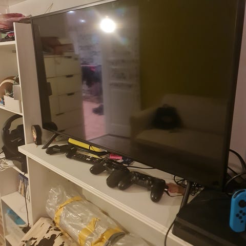 Pent brukt og i topp stand. TVen har "OneConnect"-system, som innebærer at alt av tilkoblinger og strømforsyning flyttes bort fra TVen og til en separat boks du kan hjemme inne i TV-benken, og så trekkes det kun en syltynn gjennomsiktig kabel fra denne og opp til TVen.
