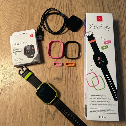 Xplora X6 Play Gen 2 barneklokke i rosa farge. Klokken har 4G SIM-støtte og leveres med ekstra deksler i ulike farger. Designet for barn med funksjoner tilpasset deres behov.