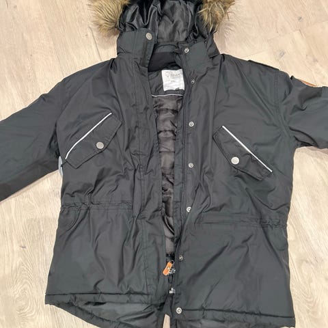 Selger vinterjakke fra pomp deluxe i fargen Grønn. Strikken ved armene har gått opp i sømmen på begge armer. Se bilde. Ellers er jakka hel og pen. Str 152