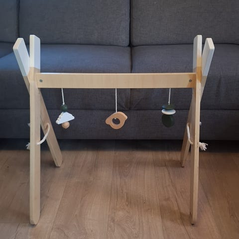 Selger fint brukt babygym i tre. Ny pris er 499,-