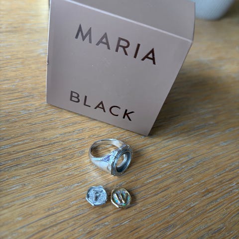 Maria Black HARALD GREEN RING GOLD i størrelse 52, men jeg bruker vanligvis str 54 -55 i andre merker så den passer.