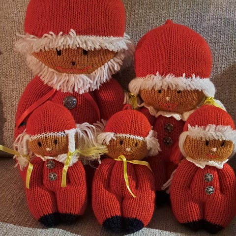 Selger en julelot med 5 stoff julenisse og nissekoner. Selger alt samlet for 160 kroner.