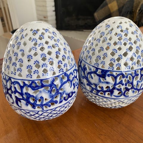 Porselensegg med rosemotiv. Pynteegg som kan åpnes og lukkes. Helt og pent. Høyde: 8 cm. Diameter: 5,5 cm.