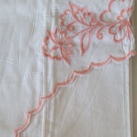 Gul duk 85 x 85 cm og 4 servietter/små duker Brodert blomster