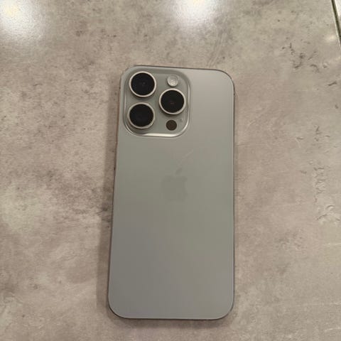 Apple iPhone 15 Pro mobiltelefon med 512 GB lagringskapasitet. Enheten har en moderne design og er utstyrt med avanserte funksjoner for daglig bruk. Batteri tilstand 85%. Veldig pent brukt