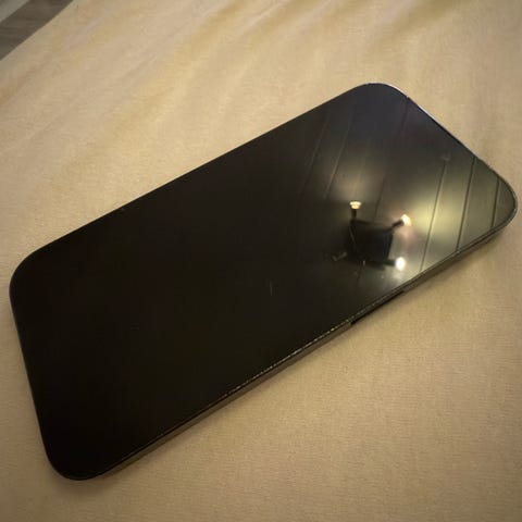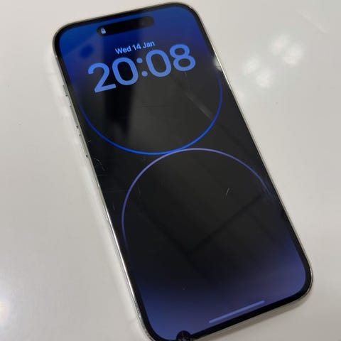Skjermen er knust. Har på skjermbeskytter, men den er også knust under skjermbeskytteren. Baksiden er hel.