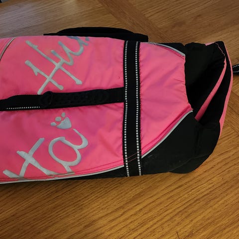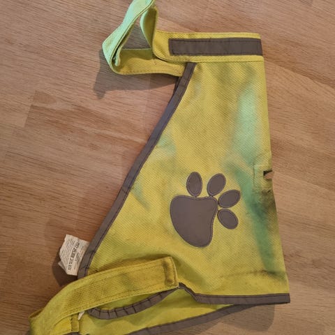 Gir bort hundeutstyr. Det meste passer til veldig liten hund, f.eks. chihuahua, eller valp. Flytevest (0–3 kg), to seler, halsbånd, refleksvest, kjølematte, børste og flexibånd.