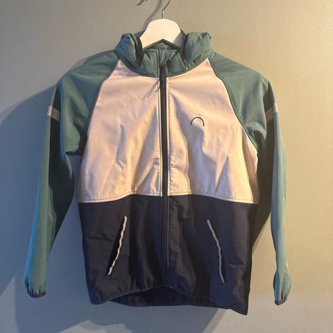 Fint brukt jakke. Noen bruksmerker på ene linningen som ikke gikk av i vask. Snor i hette mangler, men "låsene" er der, hetten har regulering i nakke. Tre utvendige lommer, en innvendig. Regulering nederst.
