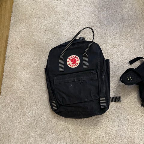 Fjällräven Kånken liten skulderveske i svart/blågrå farge. Vesken har justerbar skulderrem og er laget i slitesterkt materiale. Passer til oppbevaring av små eiendeler.