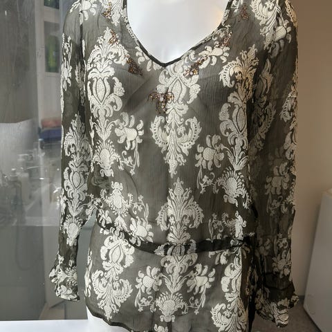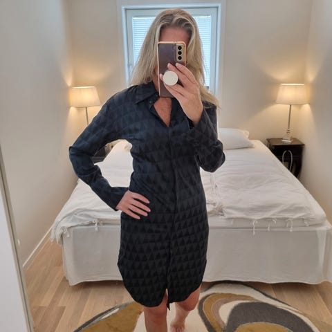 Tiger of Sweden hverdagskjole i størrelse 38. Kjolen er laget av silkemateriale og har en svart mønstret farge. Designet for kvinner.