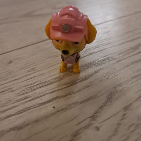 Paw Patrol lekefly med lyd, lys og Skye figur. Flyet har vinger som roterer og rosa lys i cockpiten. Flyet er i god stand med batterier men de to «Kanonene» som kan skytes ut fra vingene mangler.