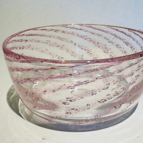 Selger en nydelig, munnblåst glassbolle designet av den anerkjente glasskunstneren Benny Motzfeldt for Plus i Fredrikstad.