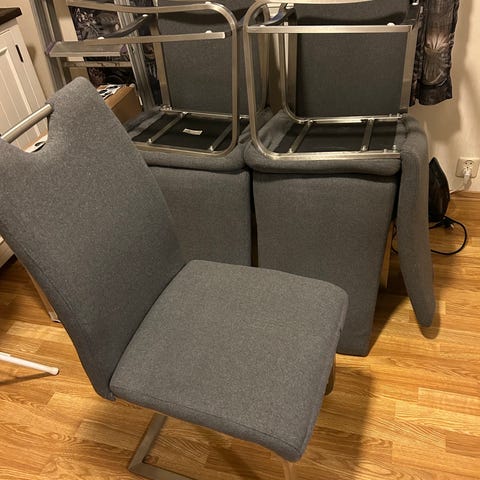 Fin stol, farge brun, med hjul. Kan brukes som spisestol eller godstol. Selv har vi brukt den som en ekstra stol i loftstua.