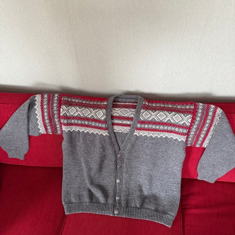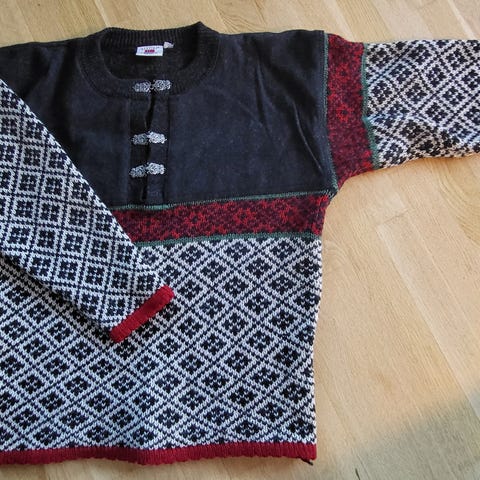 Pent og varmt strikkegenser i ullblanding fra Bouviac selges.