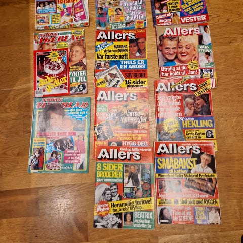 Gamle Ukeblader, Allers, Hjemmet, Norsk Ukeblad 1972 - 1980, 11stk samlet