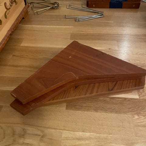 Selger seks hylleplater til veggen teak reol. Platene er godt brukt, og er fra 60-tallet. De har en del merker etter årevis med bruk. Alle hyllene er i 88 cm bredde.