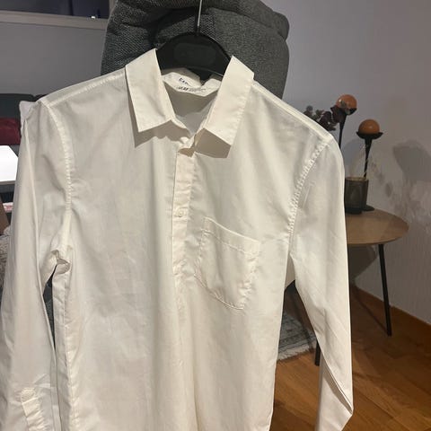 H&M Easy Iron skjorte i størrelse 170 for gutt. Skjorten er hvit og laget av bomull. Den har langermet design og er tilpasset barn.