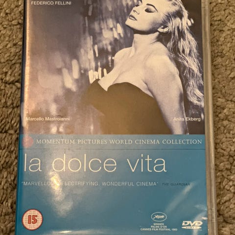 La Dolce Vita DVD med svart-hvitt omslag, film av Federico Fellini.