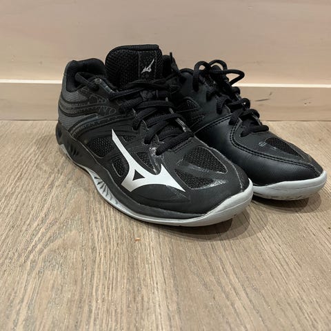 Adidas tennissko i hvit farge med svarte detaljer. Skoene har snøring og gummisåle med mønster for godt grep. Egnet for håndball, gym og annen aktivitet som krever god støtte og stabilitet.