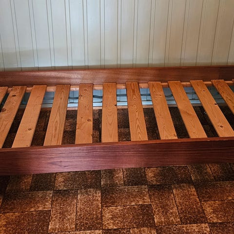 Retro teak seng selges. (Madrass kan medfølge, mot ett mellomlegg. Madrassmål er 200x80.).