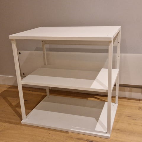 Kjøpt nye i januar. Selges grunnet passet ikke inn hjemme. Ny pris 400kr per. Selges for 300kr per. Alt av skruer følger meg. Kan henges på vegg eller stables ved siden av hverandre og oppå hverandre