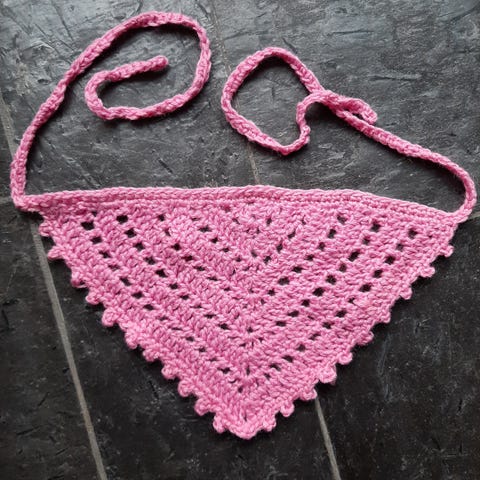 Heklet bøttehatt, laget med drops Paris 100% bomull.