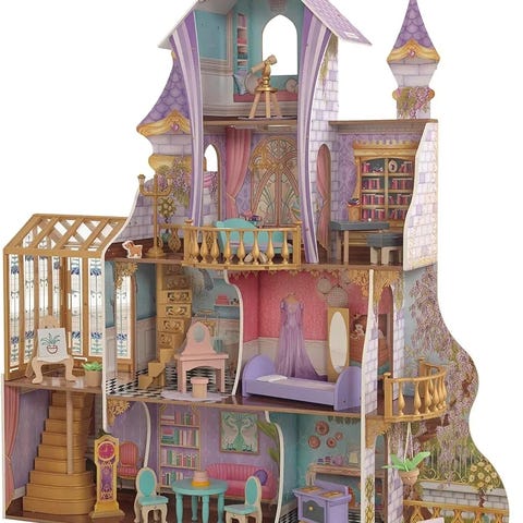 Dukkehus fra KidKraft i tre. Dukkehuset er romslig og plass til at flere barn leker samtidig. Det har gitt mange gode lekestunder hos oss og er rengjort og klar til ny eier. Dukkehuset er i god stand. Det er noen bruksmerker av tegneblyanter/tysj og glitterlim (vises på detaljbilder). Nypris 3499kr.