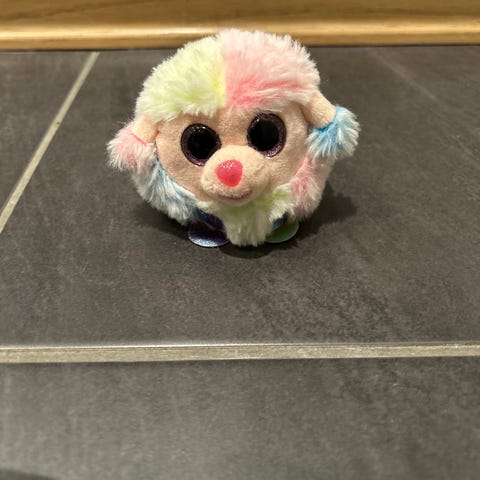 Ty Beanie Boos-kolleksjonen og har rosa og lilla flekker, glitrende rosa øyne og en rosa nese.
