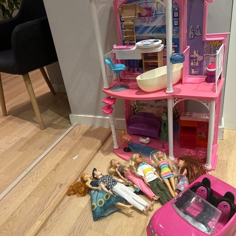 Barbie barn leker bil i rosa farge. To forskjellige modeller av biler, begge tilpasset barn.