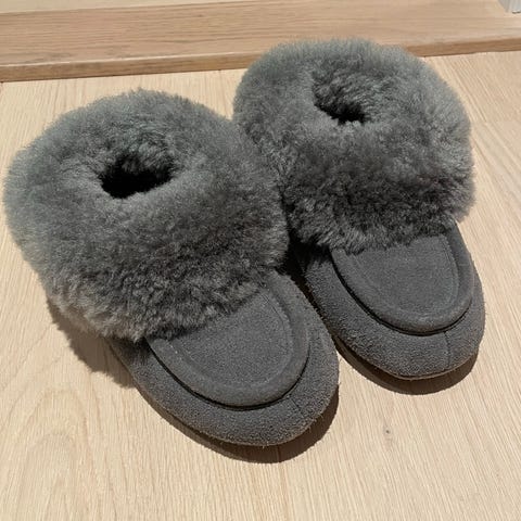 Saueskinnstøfler str 32 selges. Merke woollies kjøpt på Skoringen. Kun brukt som hyttetøfler en sesong. Nypris 500,-