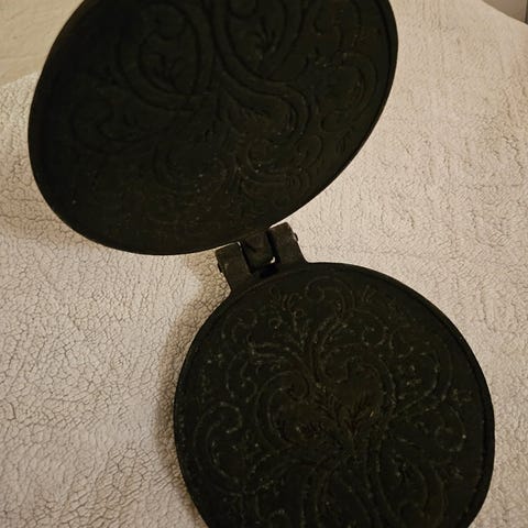 Antikk goro og vaffeljern selges.