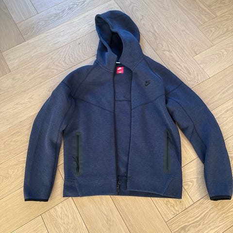 God og varm Nike tech fleece for herre i størrelse S. Jakken har glidelås foran og glidelåslomme på ermet. Navy blue sjelden farge, funker godt ute i kulden, deilig materiale inni. Har bukse også i samme farge og str kan selges som sett,(billigere) Vaskes selfølgelig før kjøp for og få av flekkene