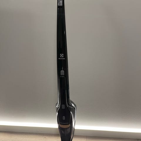 Støvsuger selges rimelig, sammen med 3 ubrukte støvsugerposer. Støvsugeren fungerer som den skal, og har innebygd feste for ekstra munnstykke, samt lang strømkabel. Sugeeffekten kan justeres både på selve støvsugeren, men også på håndtaket ved å åpne en liten ventil. Festet mellom plasthåndtaket på slangen og røret ned til munnstykket har blitt noe slitt over tid. Det gjør at røret noen ganger vrir seg i forhold til håndtaket (se bilder). Ny slange/nytt håndtak kan tilsynelatende bestilles fra Electrolux om ønskelig.