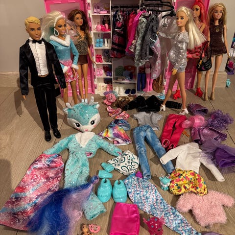 Stor barbiepakke - dukker, møbler, klær, utstyr, bil, hester ++