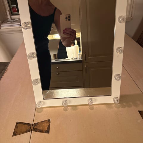 Sminkebord med LED-lys selges. Veldig praktisk med godt lys rundt speilet, og god plass til sminke og tilbehør. Pent brukt og klart for ny eier.