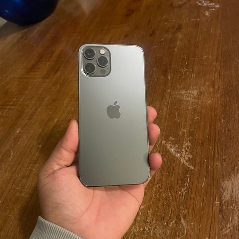 Selger min pent brukte iPhone 12 Pro med 128GB lagring.