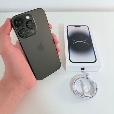 iPhone 14 Pro 128GB Spacegray. Mobilen er i God Stand, alle funksjonene fungerer som de skal. Batteritilstanden er på 86% To deksel og den originale boksen følger på kjøpet med om ønsket.