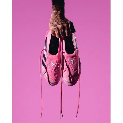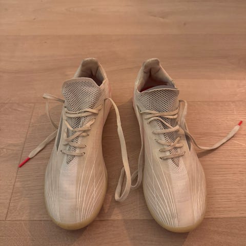 Adidas Predator fotballsko i rød farge med hvite striper. Skoene har knopper for bruk på gressbaner
