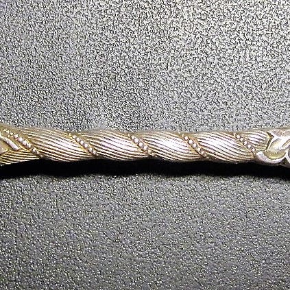 Dobbel Rokokko sølvskje med dekorativt mønster på skaftet.