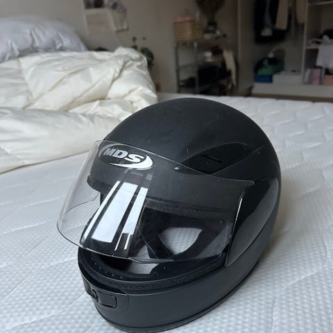 Davida hjelm i svart farge. Hjelmen har en hel dekkende form med visir og justerbar hakestropp. Innvendig polstring for komfort og sikkerhet. Passer for bruk ved motorsykkelkjøring. Begge er str M. Str er per stk