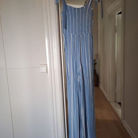Selger en helt ny jumpsuit med lapp, aldri brukt. Veldig fin og fargerik modell med mønster. Behagelig materiale og strikk i midjen som gjør at den sitter pent.