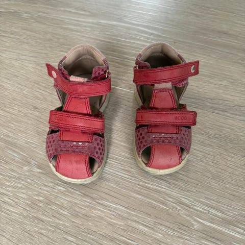 Kjempesøte og gode/praktiske sandaler. Kun brukt en sommer av 1 stk barn. Slitasje på tåboksen (som det uansett blir) ellers i utmerket stand.