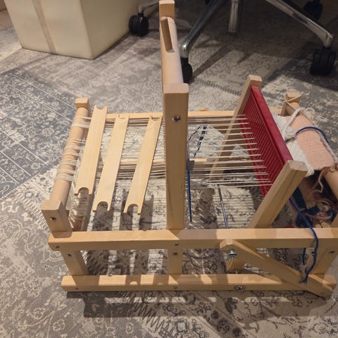 Lite brukt vevstol av tre.