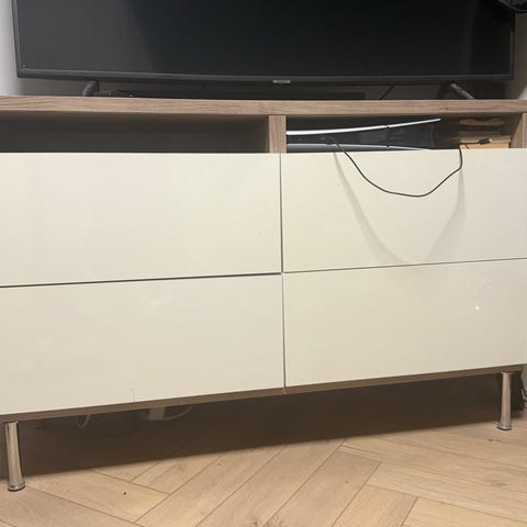 Bestå TV-benk/kommode fra IKEA. Skjært hull bak for å skjule ledninger. Må hentes på Bislett😊