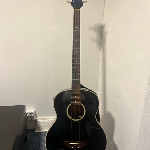 Richwood RB-60-EBK med to sett ekstra strengar. Pen bass, lett å spele på. Normal lengd og god lyd. Innebygd pickup.